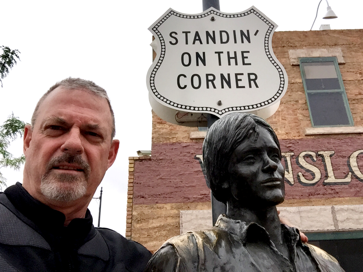 Lisa and our friend, Jim, challenged me to stand on a corner in Winslow. Interesting enough, there is a Standing on the Corner Park. I took the bait, resulting in the picture you see here. It was hilarious watching people gravitate towards this spot, complete with Eagles music playing over loudspeakers, and pose for photos. The song, written by Jackson Browne and Glenn Frey, made this quaint little town.