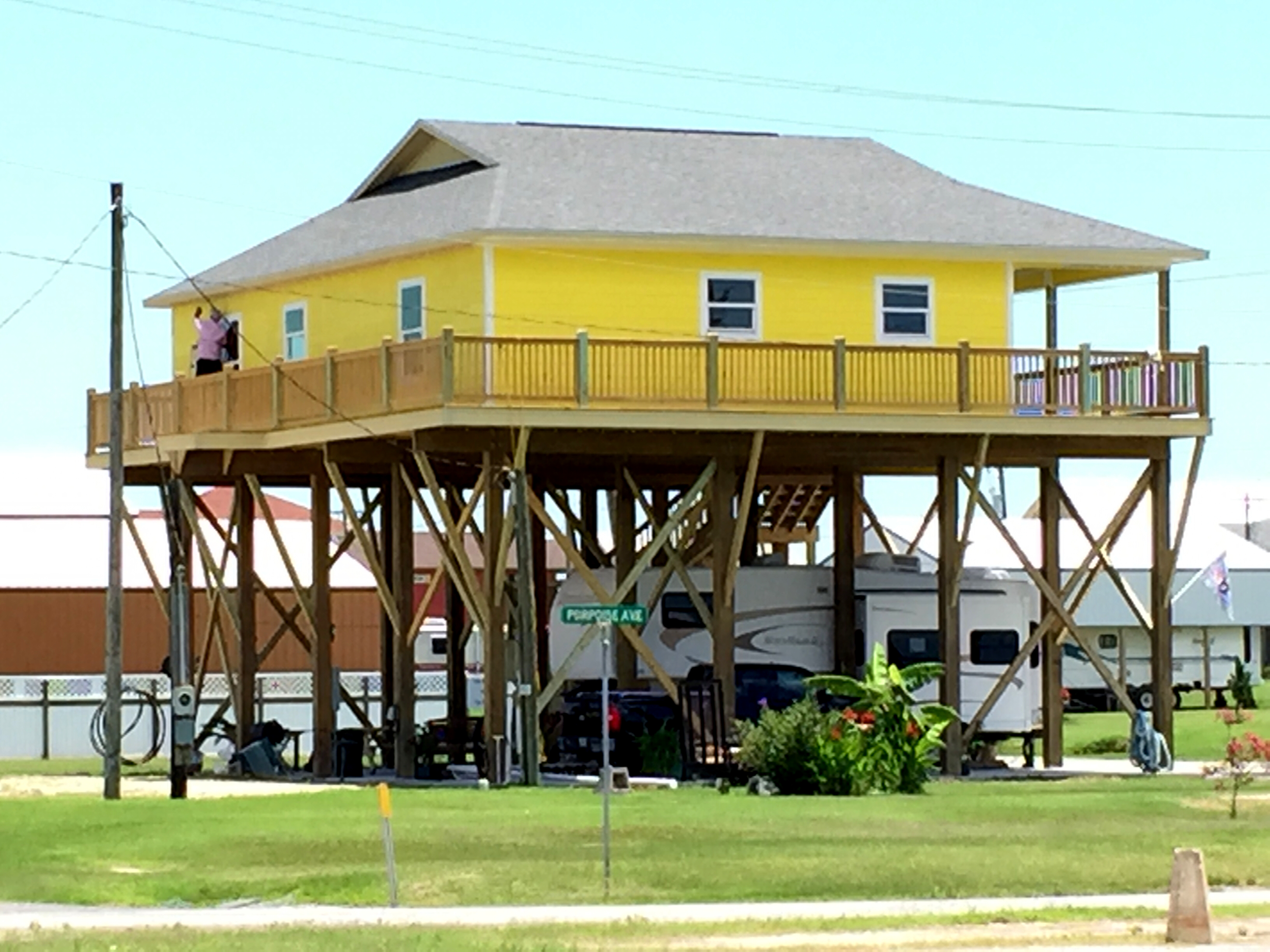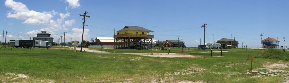 2015-06-01 13.12.062015-06-01 13.12.13I pulled into Holly Beach and was amused by the sign pictured here. I would later learn from the owner of the restaurant where I had dinner that Holly Beach was an inexpensive camping location favored by locals. About four years ago it was wiped out by storms and a surging tide. Now it is being rebuilt in the manner you see here…upscale compared to what existed historically.