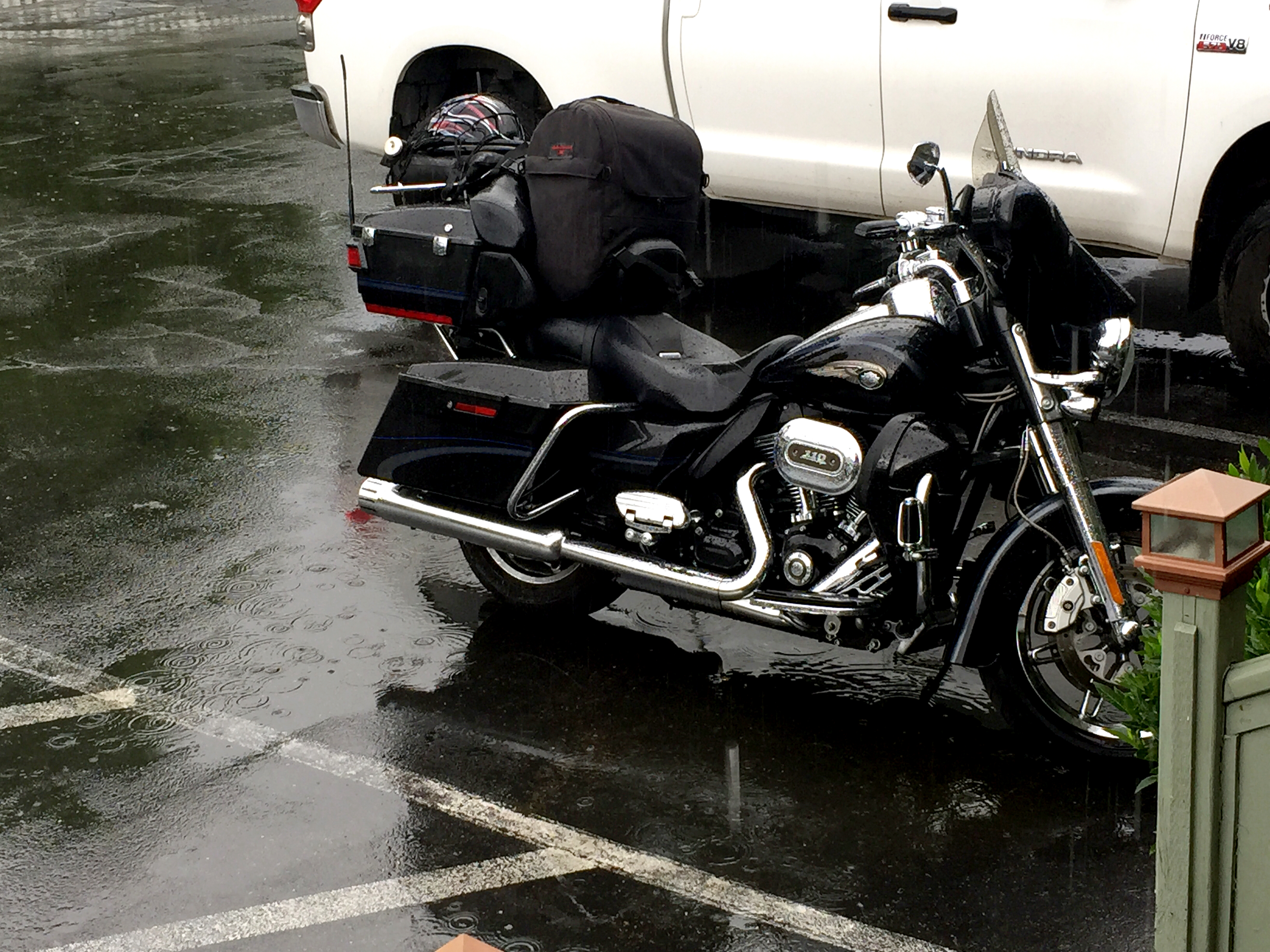 2015-07-08 11.10.172015-07-08 11.37.20 2015-07-08 12.16.522015-07-08 12.22.15 It started raining in Mt Shasta at about 3:00 am, and continued through my departure a little after 8:00 am. It seemed so ironic, here in this drought-stricken state, to begin, for only the third day of the entire trip, in full rain gear. I’d hoped to ride up Everett Memorial Drive to the site of the original Mt. Shasta Ski Bowl where I learned to ski when I was a teenager. An avalanche wiped it out in 1978. But the mountain was socked in with heavy clouds cover and rain, so there didn’t seem to be much point to taking the time to ride into the clouds with minimal visibility. There was a window of time between 9:30 am and 2:00 pm before thunder and heavy rainfall at my destination, so I needed to get moving.