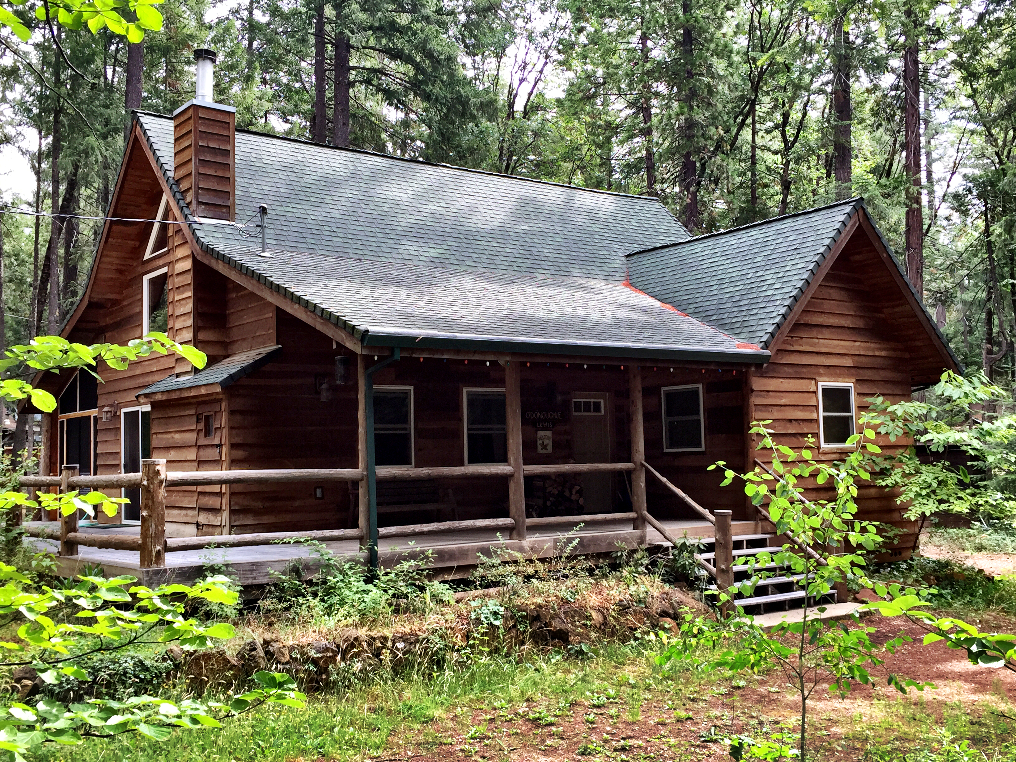 My destination for today and a day of rest tomorrow was our cabin—“Camp” as my family calls it. Our maternal grandfather, Ivan, purchased the lot in 1951. He would haul a WWII officer’s tent up to Shingletown from his home in Red Bluff every Memorial Day weekend and set up Camp. There was the tent, with a wood stove inside of it, a small, outdoor kitchen, a round fire pit, a rope swing, and, of course, an outhouse. “Granddaddy” would break camp, load what was portable into his black, wooden trailer, and haul it back to Red Bluff for Winter storage every Labor Day.